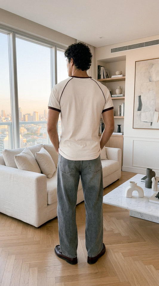 Remera Ringer Stamp Crudo