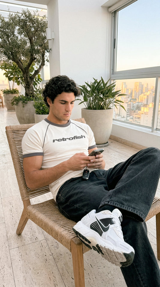 Remera Ringer Script Crudo